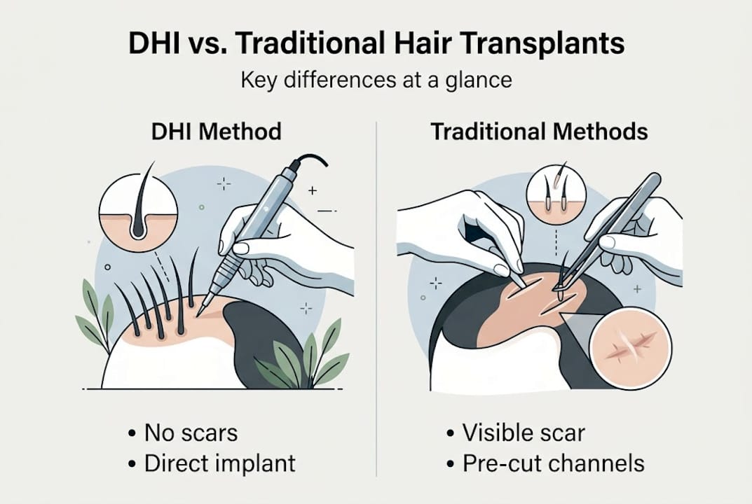 DHI vs. traditional hair transplant techniques